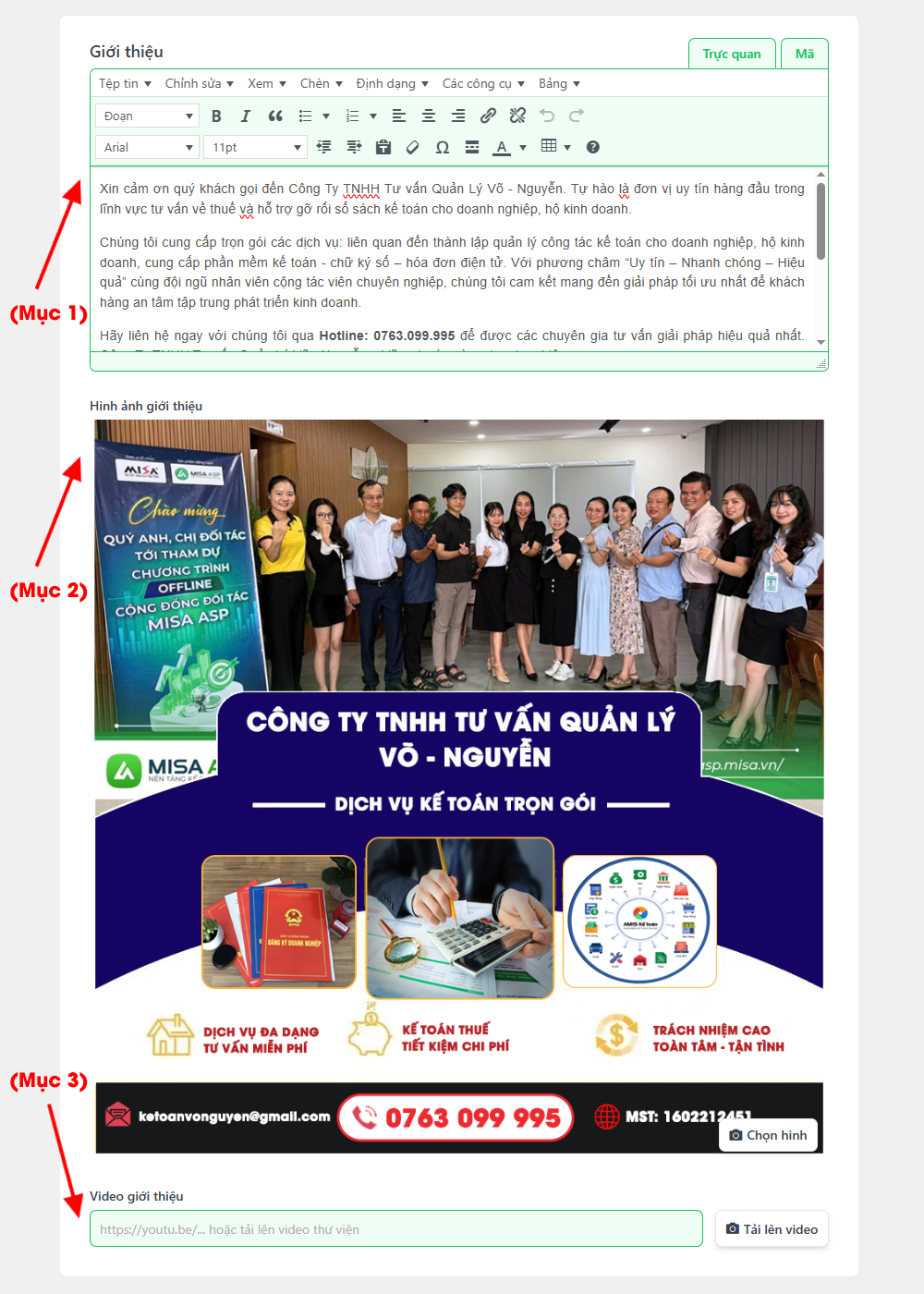 • Mục 2: Thêm hình ảnh giới thiệu về đơn vị hoặc công ty