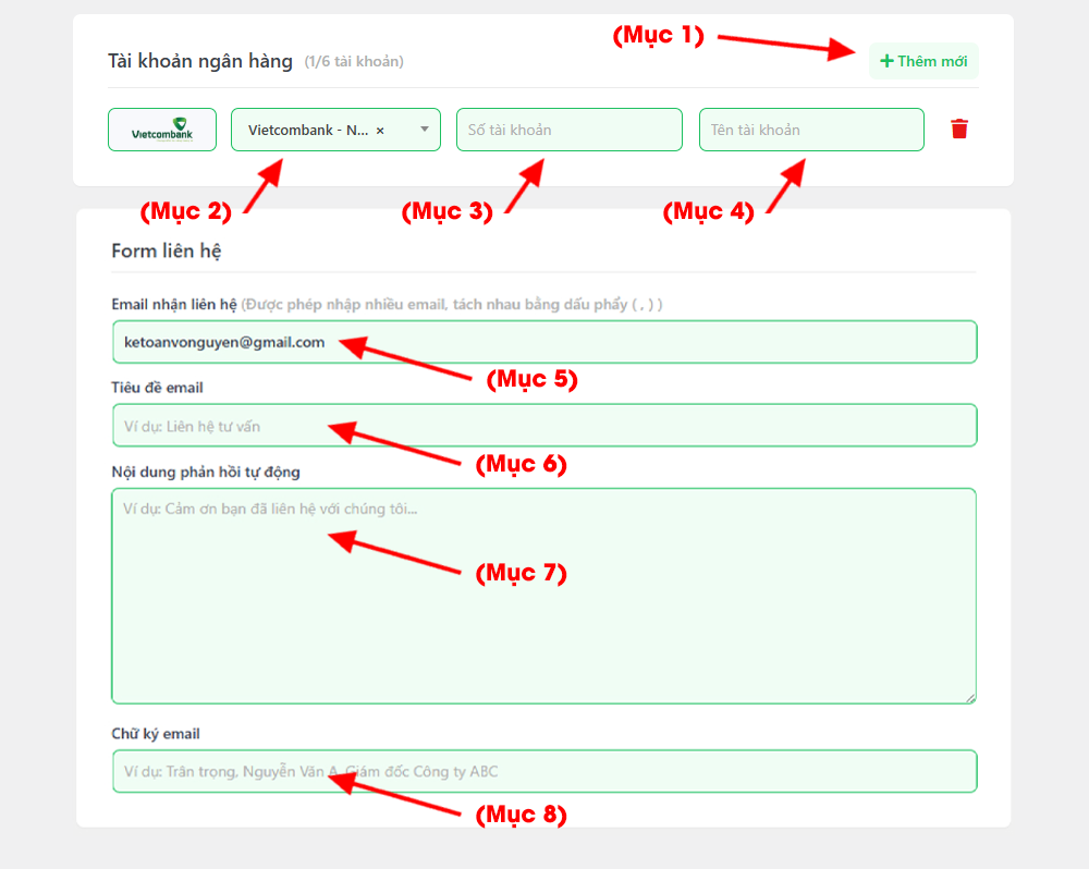 • Mục 5: Nhập email của bạn để khi khách gửi thông tin từ form sẽ được gửi về email của bạn