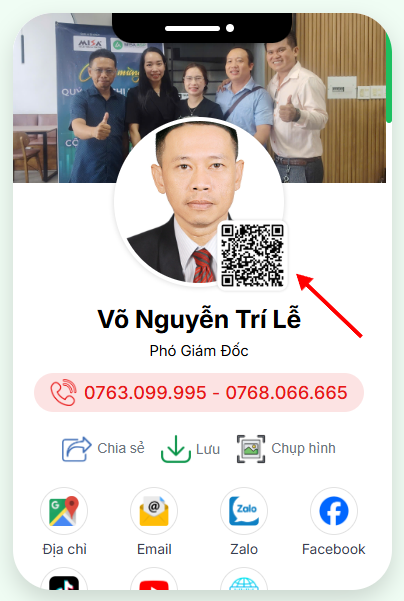 Bạn có thể lấy mã QR của danh thiếp E-card bằng cách click chuột phải vào hình ảnh mã QR xong tải về (Giống như hình đính kèm ở dưới)