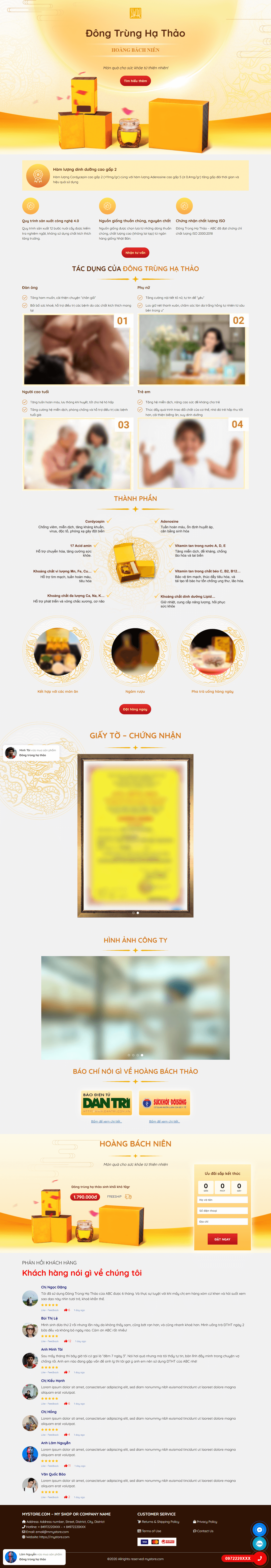 Mẫu landing page đông trùng hạ thảo – Ms:004