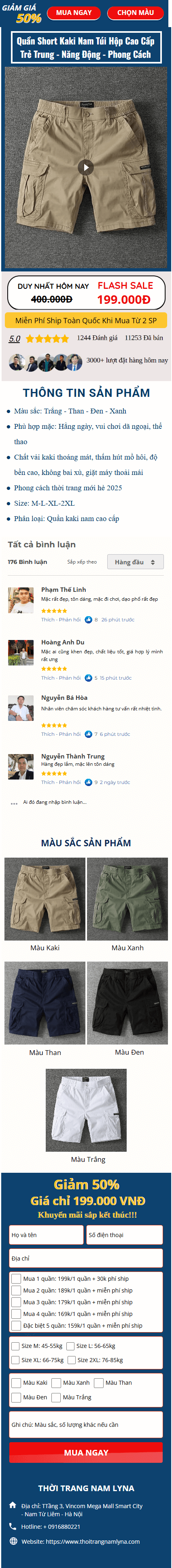 Mẫu landing page quần short kaki nam – Ms:013