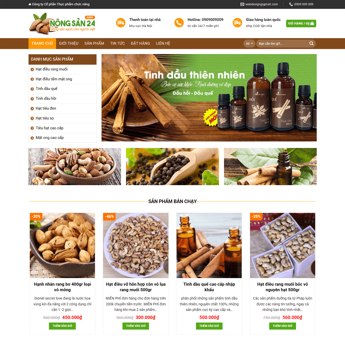 Mẫu website nông sản hạt, tinh dầu – Ms:021